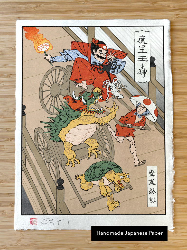 1) Handmade Japanese Paper: Created by the Kikuchi Studio in Ehime Japan, this paper features a lovely mulberry texture and rough deckled edges. The overall effect makes our giclée prints look like real historical Japanese prints. I'm very proud of these!